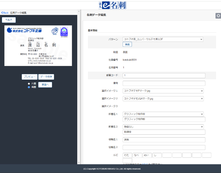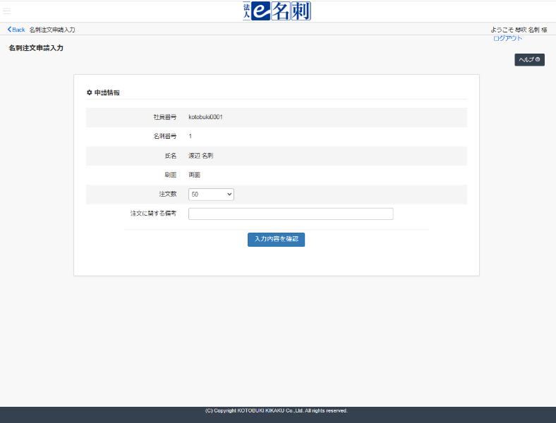 名刺発注担当者が、自分の社員番号・パスワードでログインし、名刺データを作成・編集します。