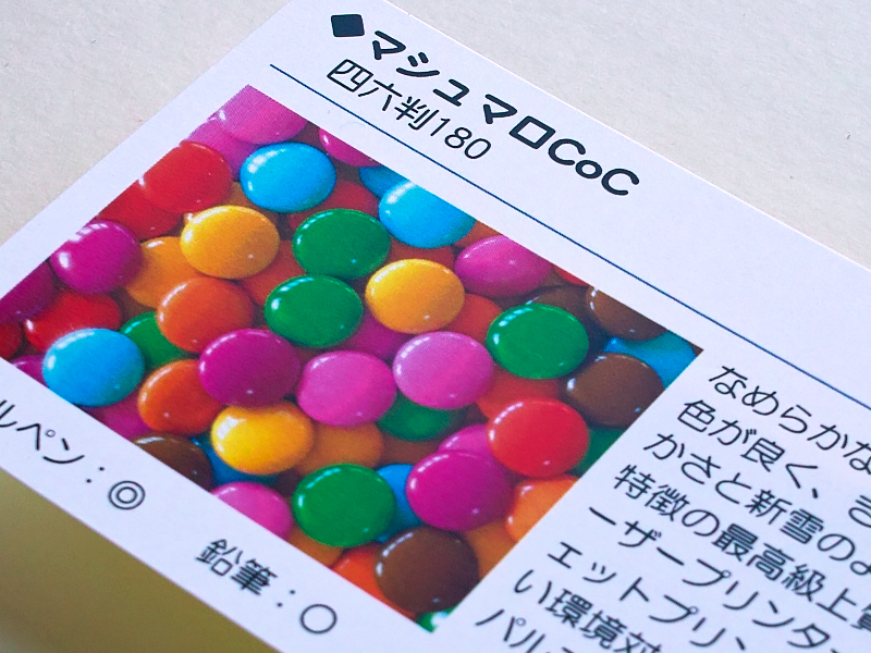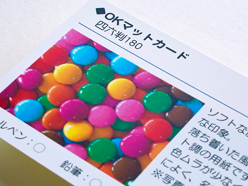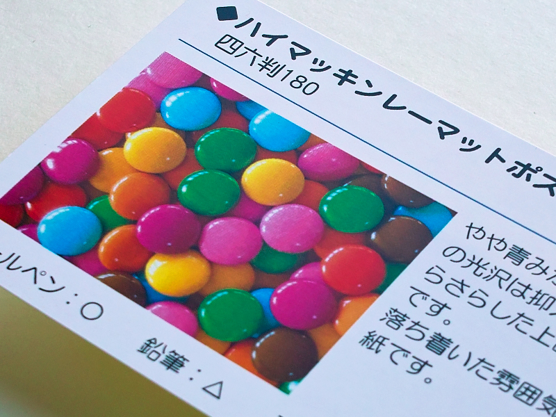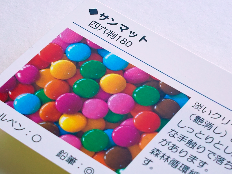| 紙質 | 高級な質感で発色の良いマットコート紙です。 光沢を抑え、落ち着いた風合いが特徴です。 |