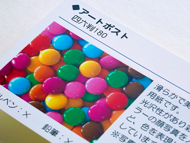 | 紙質 | ★上品な質感が特長の高級紙。 やや青みがかった白色で表面の光沢は抑えられており、さらさらした上品な質感が人気です。 落ち着いた雰囲気のある高級紙です。 |